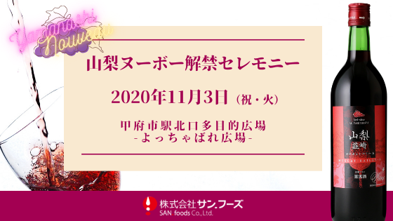 2020年11月3日(祝・火)甲府市駅北口多目的広場(よっちゃばれ広場)で「山梨ヌーボー解禁セレモニー」が開催されます。